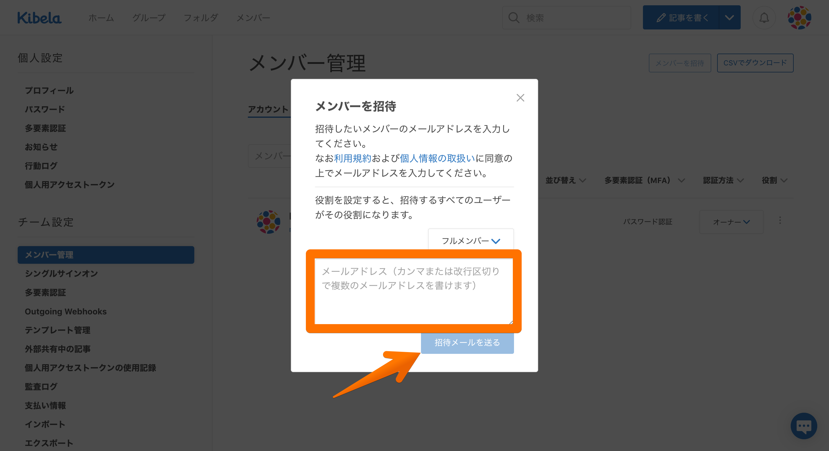 2025/10/02 チームメンバーを一括で招待したいです。 カンマまたは改行区切りで複数のメールアドレスに対して一括で招待ができます。 チームメンバーを複数人招待したい際は、下記方法にて手続きください。 メモなどに招待するメンバーをまとめる プロフィールアイコン>メンバー管理>「メンバーを招待」ををクリック メールアドレスをコピー&ペーストし「招待メールを送る」をクリック