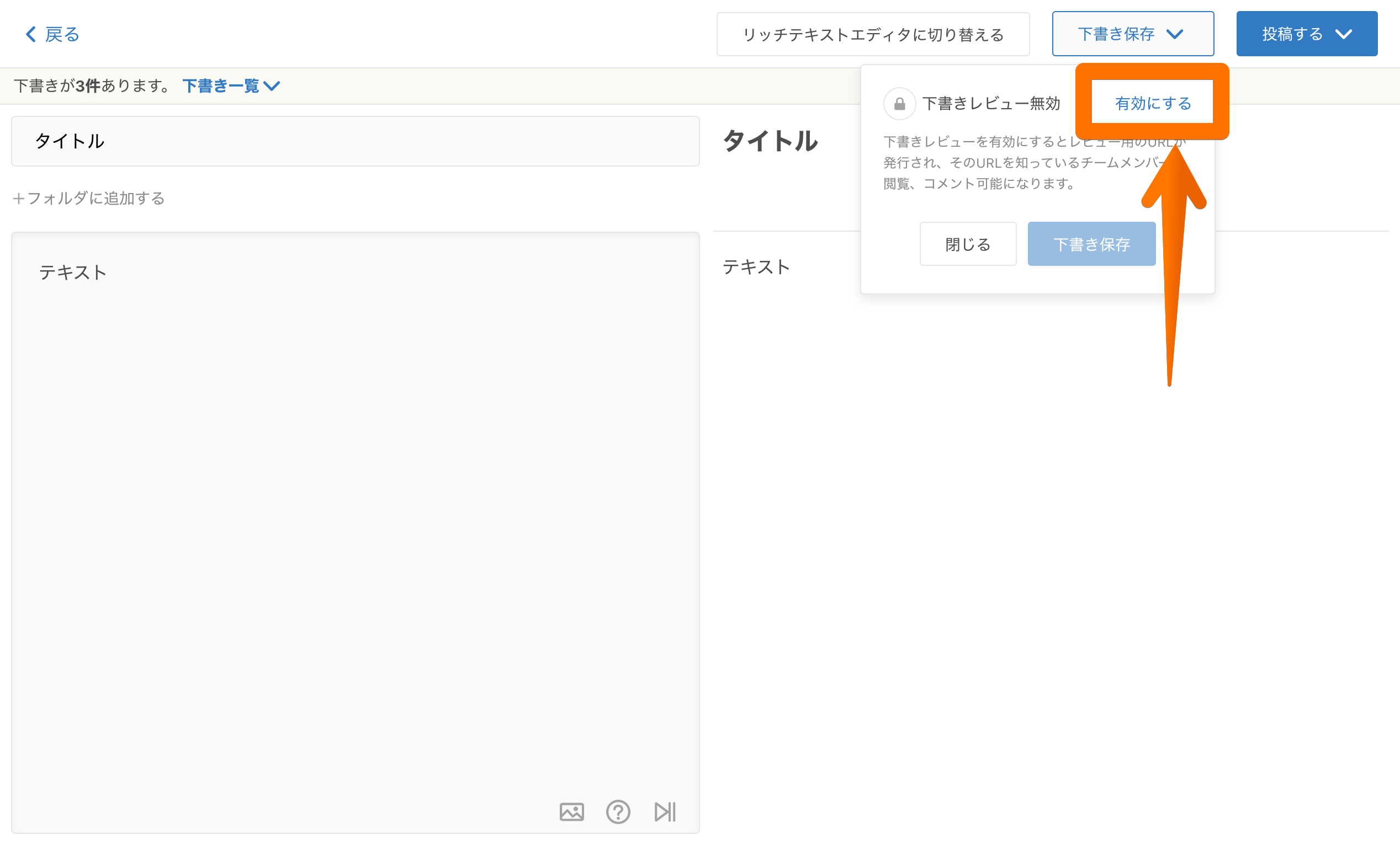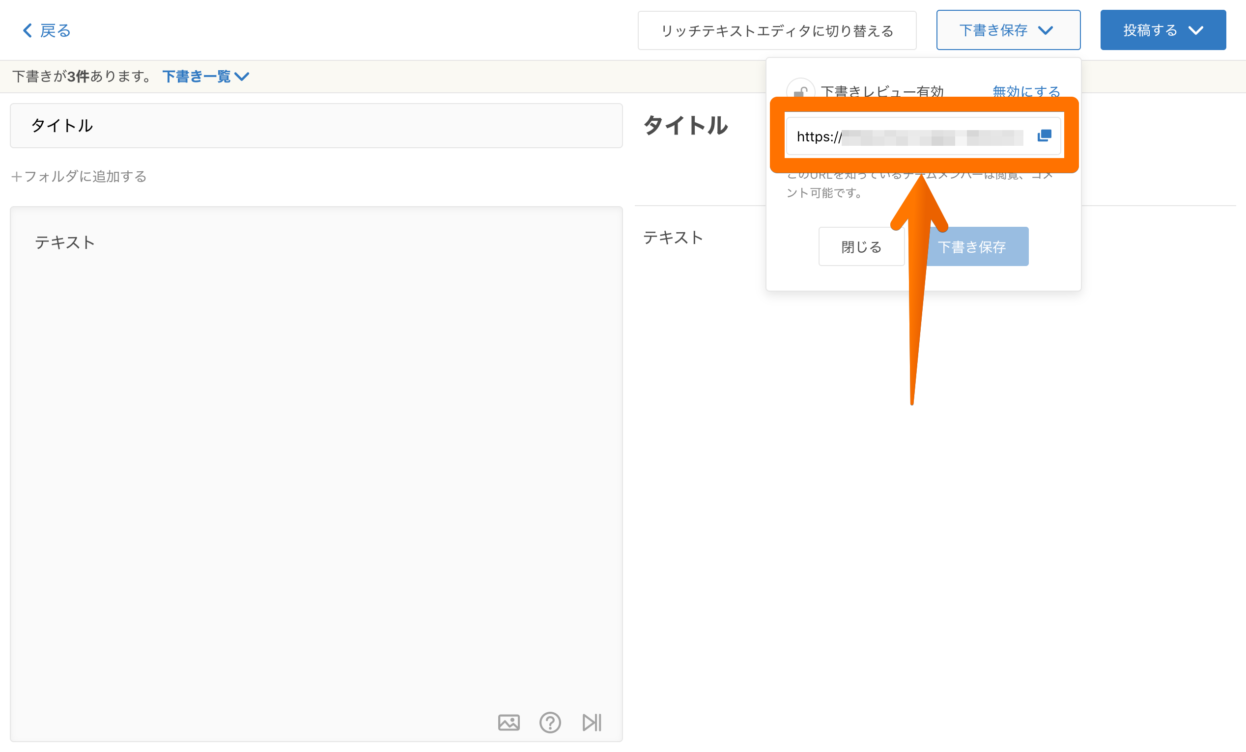 このURLを知っているチームのメンバーは、下書き記事に対して閲覧・コメントが可能です。
