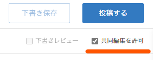 2025/10/02 記事のデフォルトの編集権限の設定について 記事を作成する際のデフォルトの編集権限を設定できます。 本操作は、管理者/オーナー権限のユーザーのみが行えます。 設定 > チーム設定 > チーム管理 「共同編集を有効にする」をチェックしている場合は、新規記事投稿時のチェックがデフォルトで有効になります。