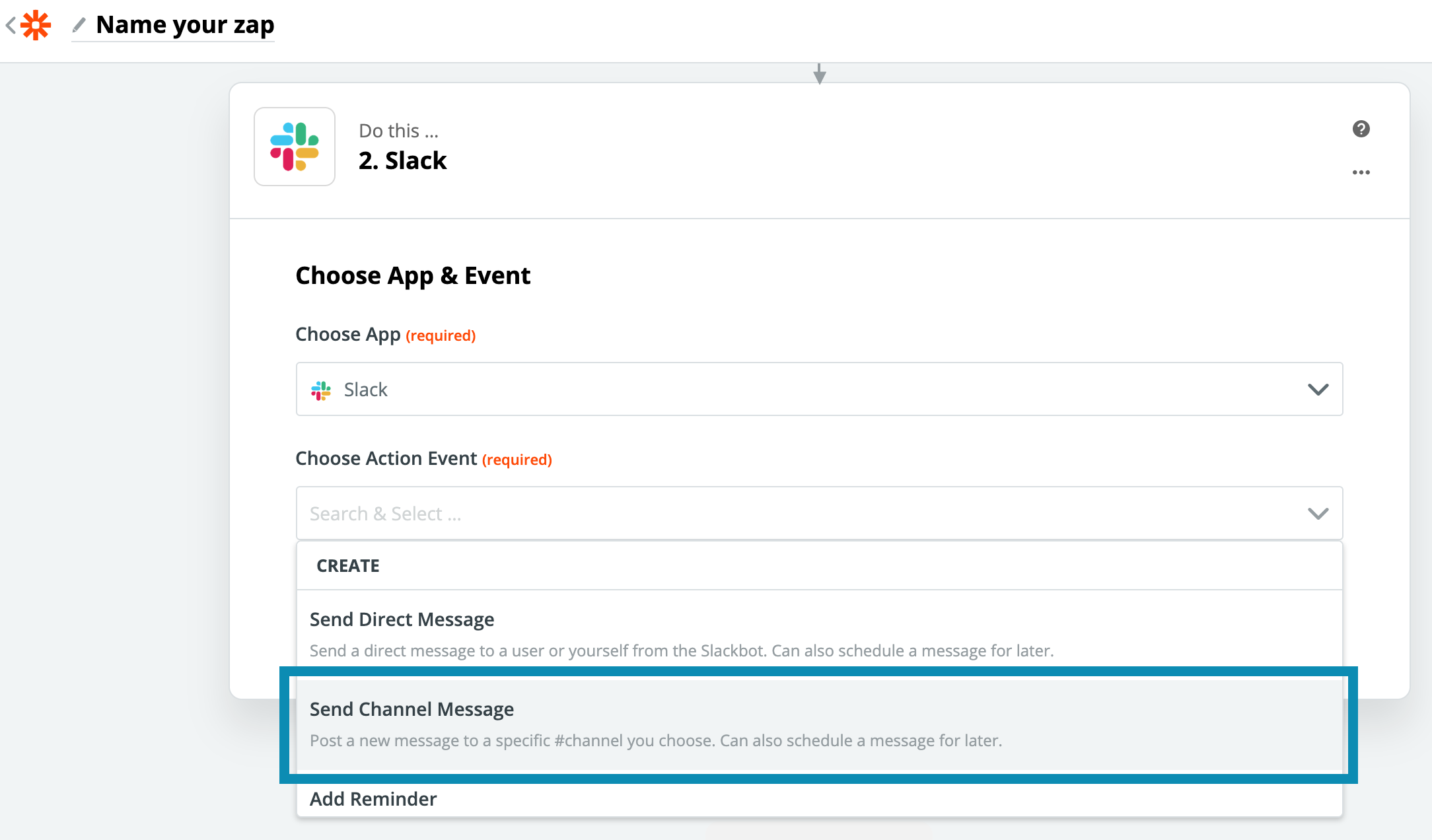 Choose to show the Zap link in the message. If maintaining Zapier with several users, select yes. If not, choose no.